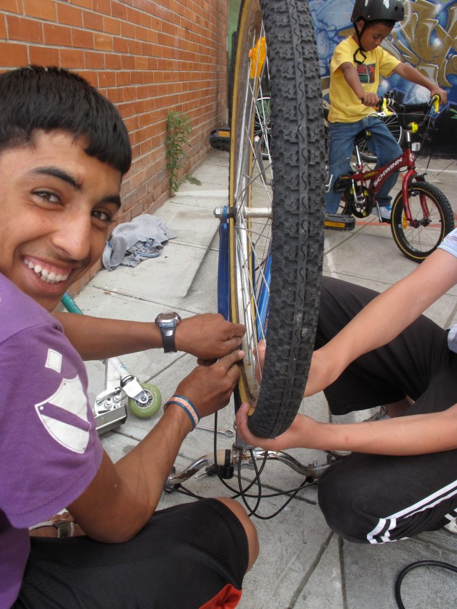 By popular demand, we have an encore session Friday(22/1) from 2-4:30 If anybody is interested in helping out, get in contact. Beyond the scope of the summer holiday activities we are hoping to organise a portable Bike Kitchen happening possibly once a month in this location.