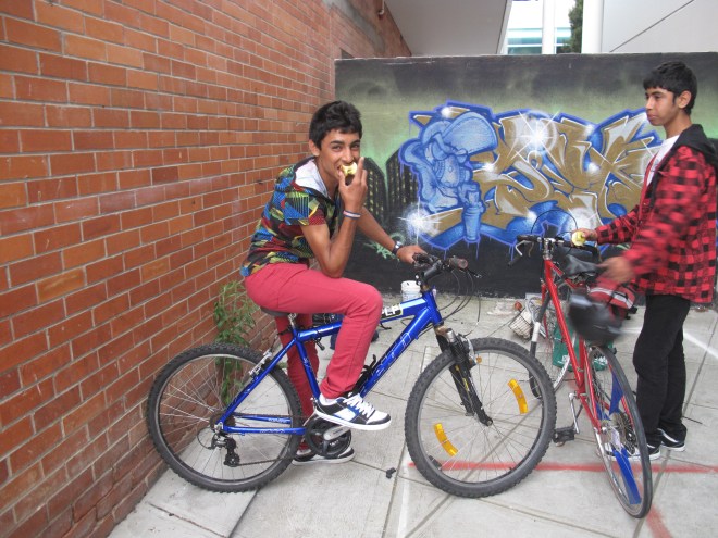 MRC Summer Program – More Pics Amiel road my bikeand I rode his! We bought this bike for $5. Bargain. Some nice bike posing. and more. Alex’s bike which came back this week sporting inspired spoke tape and needing a ‘bandage’ to get home. Share this: Click to share on Facebook (Opens in new window) Facebook Click to share on X (Opens in new window) X Like Loading... Related