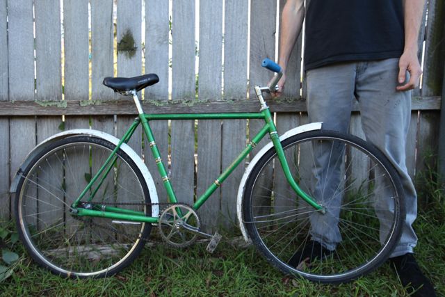 McBain’s is one of the great Hobart bike names and this is a classic mens bike. Old school single speed with back pedal brake, and guards. It’s a beautiful green with it’s Kevin McBains stickers it’s an authentic classic, not done up or messed about with – just a great bike for cruising.