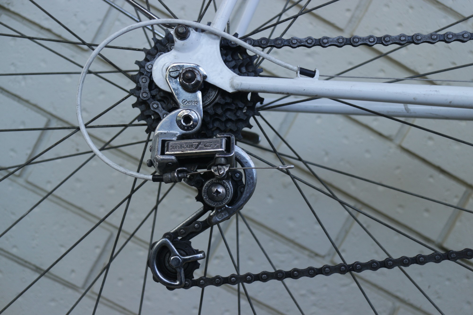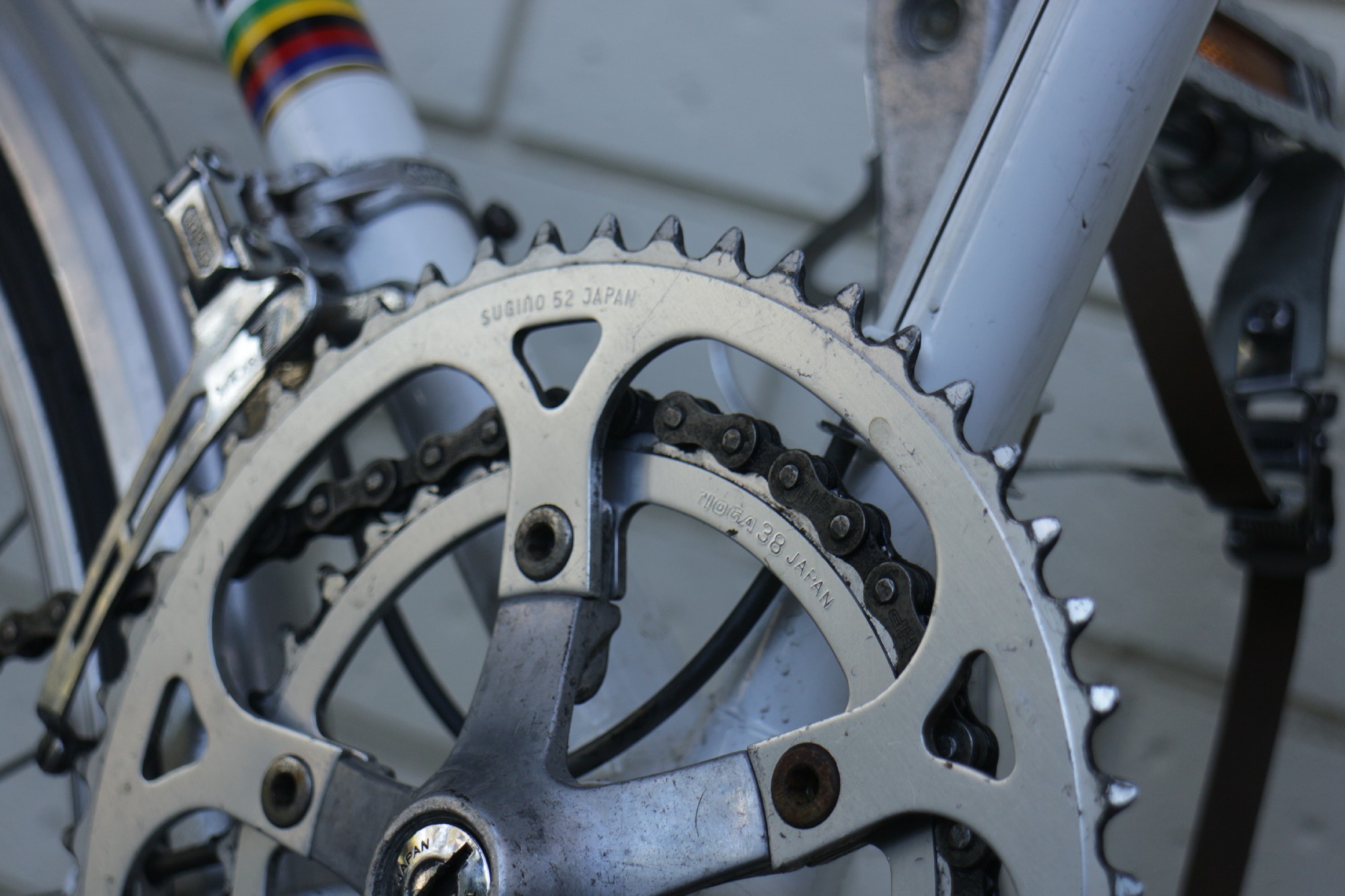 Suits a 170cm+ rider with 27 inch wheels rebuilt with NOS Araya rims on Normandy high flange hubs. Also, effective and period correct brakes and winter-proof mudguards that don’t rattle. Quality parts, new tyres and style that works – I’ve tested it extensively.
