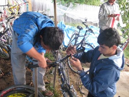 Some late comers from two weeks ago, Milad,Hossein,Reza,Mostafo and Sayed that had a look at a few bikes at closing time were back in force today, five in number, and they were ready to take on a few challenges all required larger frame bikes and all quite happy to start their build from the frame up. Sayed was finishing a bike from two weeks ago. This weekend I think we raided every spares box and in true bike kitchen fashion, five great bikes were cooked up. Some strange combinations seem to work, a seven speed hub on a five-speed shift coupled with a three speed crank on what originally was two speed derailleur. The boys seemed happy to help each other out and with a flurry of tools and many hands the finished products were ridden home with smiles all round.