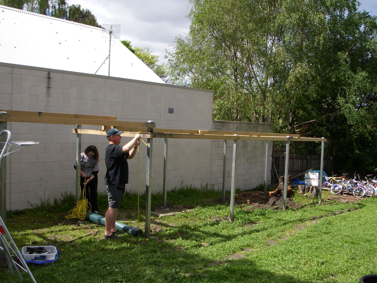 1 Start of session2 Shadecloth up and drilling begins3 End of session4 view from the kiddies end5 neatly ordered frames6 Aaron working on his steed